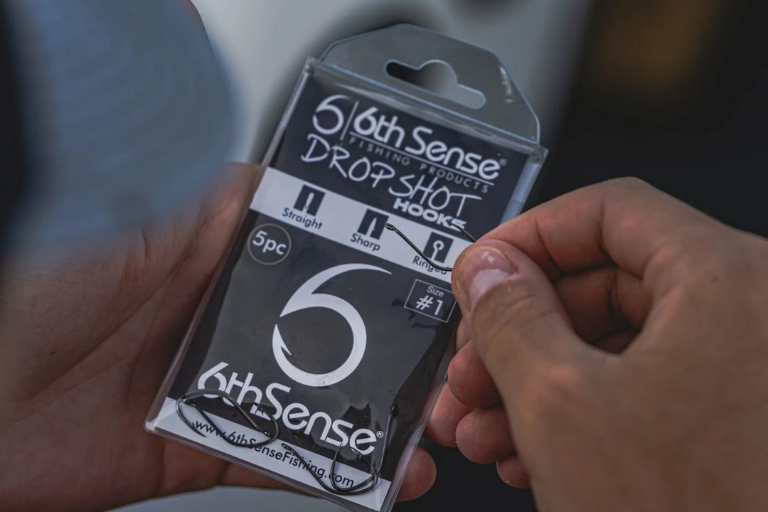 The 6th Sense Drop Shot hook is a must have hook that is designed for an increased hook up ratio when the bite is subtle and hard to feel. Designed with a slightly inward point and a deep-bend shank, the 6th Sense Drop Shot hook almost creates its own hookset as the fish takes off. The slightly inward hookpoint also helps deflect off rock and cover, without the potential risk of the hook coming out of the fish’s mouth. So, when the bite is very light, tie on one of these Drop Shot hooks to help get those finicky fish into the boat.
